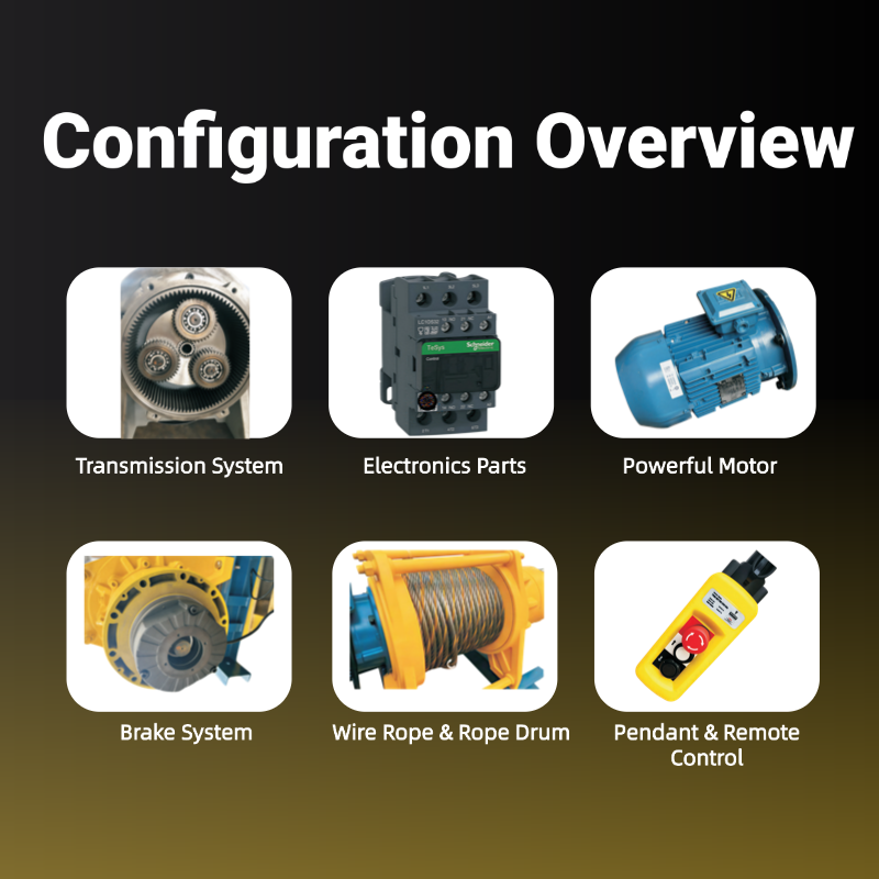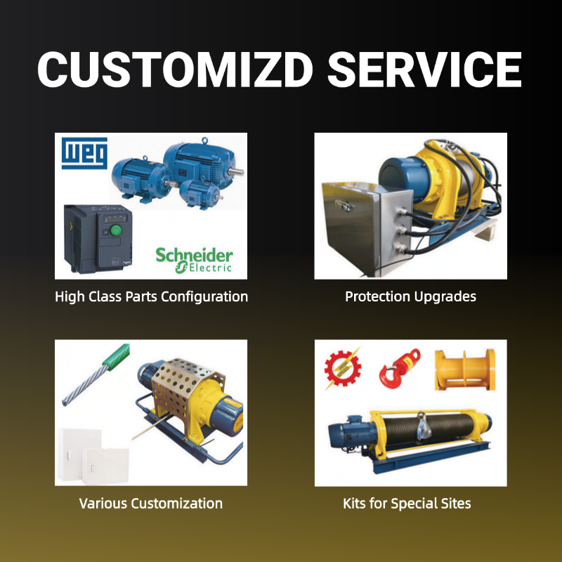4.Electric Motor: WEG brand motor with IP55 protection and a 3-year warranty, providing reliable power for the electric winch.