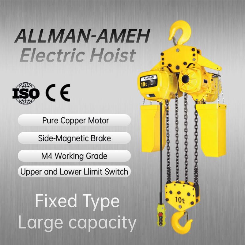 Jeder feste Arbeitsplatz verdient eine Hebelösung, auf die Sie sich immer verlassen können. Die feste Ausführung der ALLMAN AMEH-Serie Elektrischer Kettenzug ist speziell für die dauerhafte Montage an festen Hebepunkten konstruiert und bietet zuverlässige, schwerlastfähige Leistung genau dort, wo Sie sie benötigen —tag für Tag.