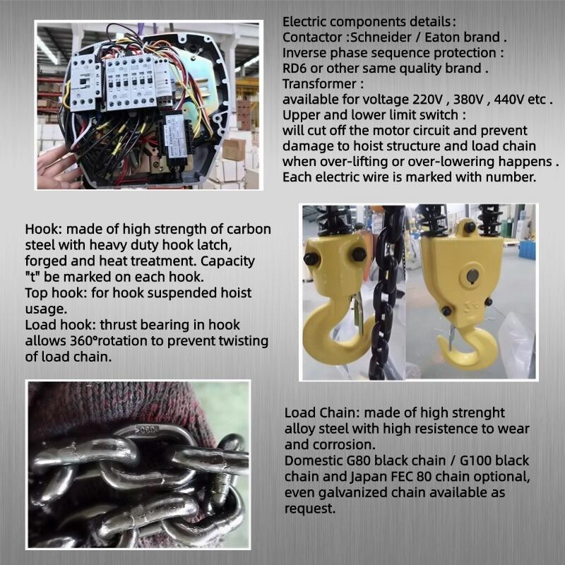Benötigen Sie einen Hebezeug, der stark, aber nicht schwer ist? Der vollständig aus Aluminium-Druckguss gefertigte Körper dieses elektrischen Kettenzugs vom Festtyp bietet ein außergewöhnliches Verhältnis von Festigkeit zu Gewicht – einfach zu installieren und für eine lange Lebensdauer konstruiert.