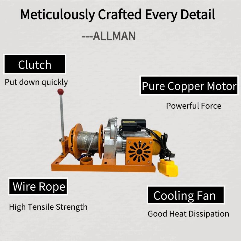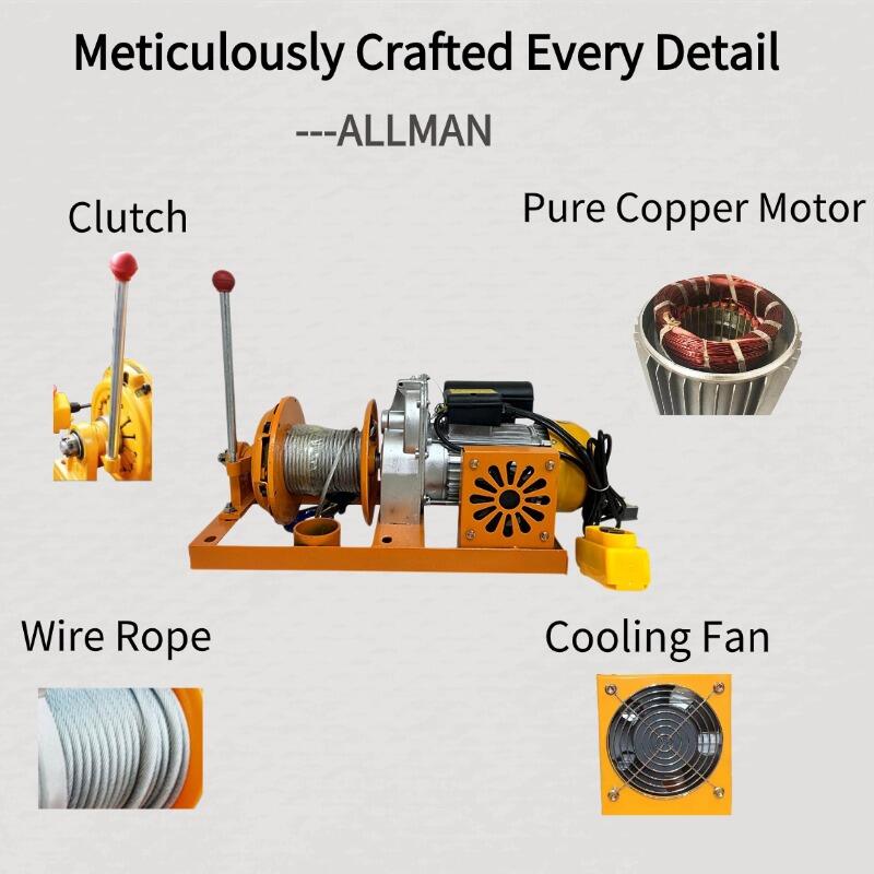 ALLMAN electric winch Model AMCW are kind of multifunctional electric winch for lifting and pulling applications. The electric winch can be widely used in construction and building industry, especially on light crane system. Electric winch with clutch for smooth operation.Comparing with others,electric winch with clutch can brings better working performance.
